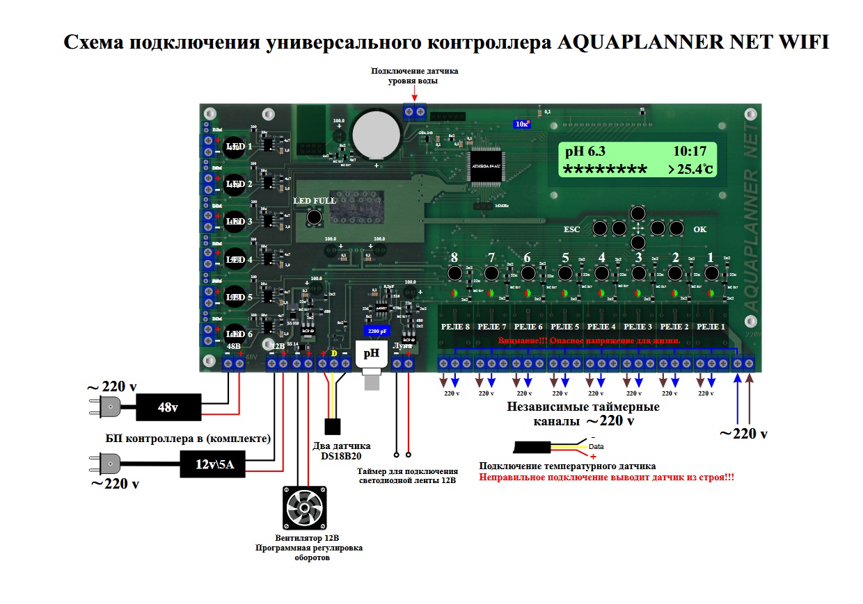 Схема подключения оборудования к контроллеру AQUAPLANNER NET: